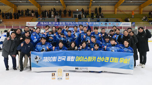 HL 안양은 오늘(23일) 서울 성북구 고려대학교 아이스링크에서 열린 제80회 전국종합아이스하키선수권대회 결승전에서 연세대에 4대 2 역전승을 거두고 우승 트로피를 들어 올렸습니다.