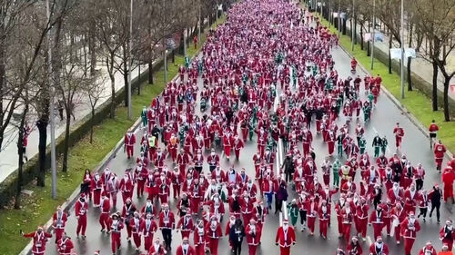 스페인 마드리드의 산타클로스 달리기 행사 현장입니다.