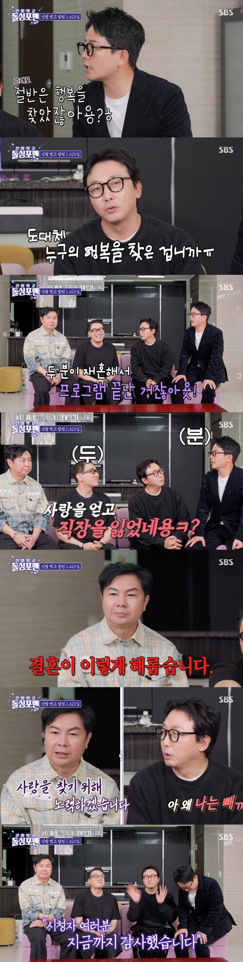 이를 들은 탁재훈은 "도대체 누구의 행복을 찾은 거냐. 두 분 때문에 이 프로그램이 끝나는 것 아니냐"라며 서운함을 드러냈다.