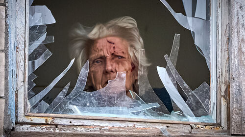 ▲ 부상당한 채 창밖 내다보는 우크라이나 주민