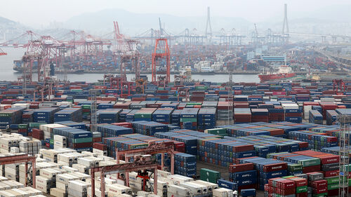 ▲ 지난 1일 부산항 신선대부두, 감만부두에 컨테이너가 가득 쌓여 있는 모습