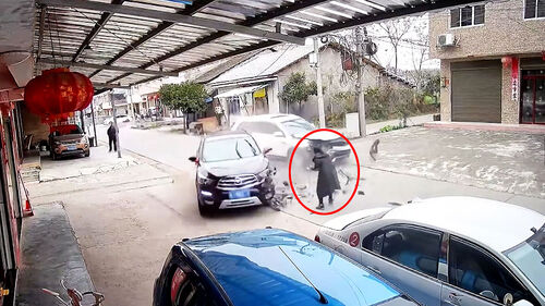 주변에 있던 여성 행인을 종이 한 장 차이로 스치는 모습이 정말 아찔하죠.