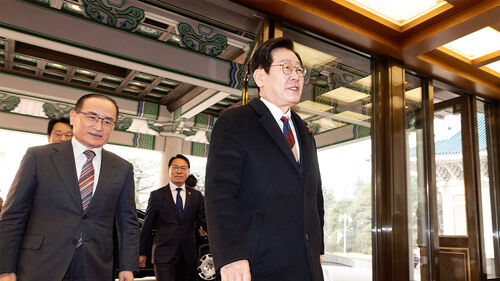 ▲ 이재명 대통령이 29일 대통령실 이전 작업이 마무리된 청와대 본관으로 첫 출근하고 있다.