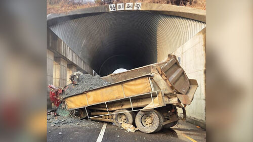 오늘(29일) 오전 10시 20분쯤 경기 시흥시 포동 학미터널 부근을 달리던 덤프트럭이 터널 구조물을 들이받았습니다.