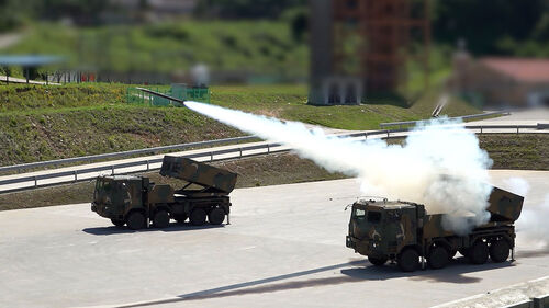 1초에 2발꼴로 날아가 목표지역을 초토화하기 때문에 '강철비'로도 불리는 국산 다연장로켓시스템 '천무'입니다.