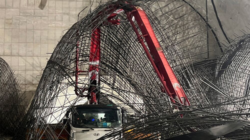 ▲ 18일 매몰사고가 발생한 서울 여의도역 신안산선 공사 현장 지하 약 70미터 지점에서 콘크리트 타설 작업 차량 위를 낙하한 철근들이 뒤덮고 있다.