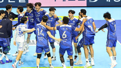 남자부 최하위 삼성화재는 오늘(1일) 인천 계양체육관에서 열린 프로배구 진에어 2025-2026 V리그 남자부 방문 경기에서 선두 대한항공을 세트 스코어 3대 2로 이겼습니다.