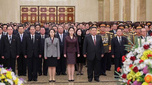중앙통신이 별도로 언급하지 않았지만 공개된 사진을 보면 김주애와 리설주가 참석한 사실도 확인됩니다.