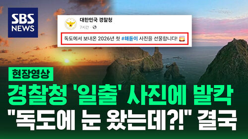 [현장영상] 일몰을 일출로? "독도 눈 왔는데!" SNS 발칵에 "혼선의 사진이"입력 2026.01.02 17:40 양현이 작가 Seoul 동영상 재생 10초 앞으로 10초 뒤로다음 추천 영상 영상...영상...영상...경찰청이 2026년 새해를 맞아 공식 사회관계망서비스(SNS)에 게시한 '독도 해돋이 사진'이 논란이 일자 해당 게시물을 삭제하고 공식 사과했습니다. 현장영상에 담았습니다. (구성: 양현이 / 영상편집: 류지수 / 디자인: 이정주 / 제작: 디지털뉴스부)Copyright Ⓒ SBS. All rights reserved.무단 전재, 재배포 및 AI학습 이용 금지
