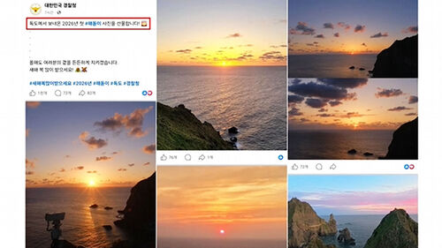 앞서 경찰청은 '독도에서 보내온 2026년 첫 해돋이 사진을 선물합니다'는 글과 함께 사진 6장을 올렸는데, 서경덕 성신여대 교수가 오늘 자신의 SNS를 통해 "한 누리꾼의 제보로 확인한 결과, 일몰 사진이 일출 사진으로 둔갑했다"고 지적했습니다.