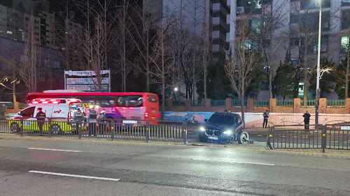 어젯(2일)밤 11시쯤 경기 고양시 덕양구 화정동 한 도로에서 36살 A 씨가 몰던 외제차량이 중앙분리대를 들이받았습니다.