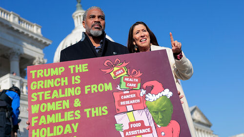 ▲ 지난달, 해결되지 않은 오바마케어 보조금 만료 문제에 미국 민주당 하원의원들이 이를 비난하고 있다.