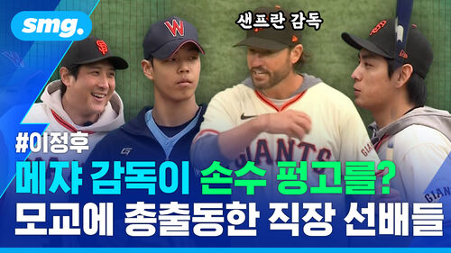 샌프란시스코 자이언츠 외야수 이정후가 오늘(7일) 경기도 이천 LG 챔피언스파크에서 샌프란시스코의 토니 바이텔로 감독, 동료 선수 윌리 아다메스와 함께 휘문고, 덕수고 선수들을 대상으로 일일 클리닉을 진행했습니다. 샌프란시스코 구단은 래리 베어 대표이사(CEO)와 버스터 포지 사장 등 구단 수뇌부와 함께 지난 5일 방한해 이틀(6일~7일)에 걸친 방한 행사를 마무리했습니다.