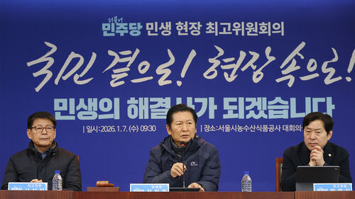 ▲ 더불어민주당 정청래 대표가 7일 서울 송파구 서울시농수산식품공사에서 열린 민생현장 최고위원회의에 참석해 있다.