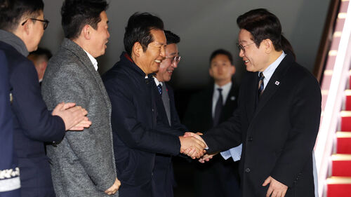 공항에는 강훈식 청와대 비서실장, 정청래 민주당 대표, 윤호중 행정안전부 장관 등이 나와 이 대통령 부부를 맞이했습니다.