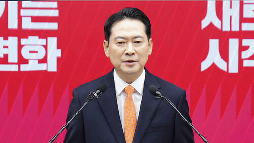 '이기는 변화'를 구호로 내걸고 기자회견에 나선 국민의힘 장동혁 대표.