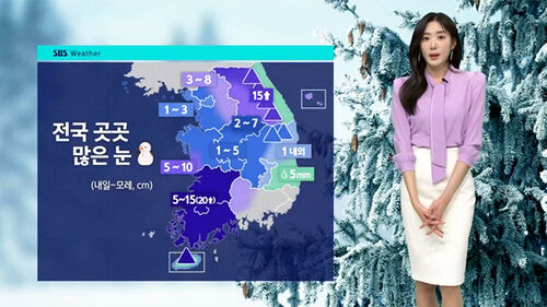 내일(10일)은 경기 동부와 강원, 전북 지역에 모레는 호남을 중심으로 대설특보 수준의 많은 눈이 예상돼 대비 잘해주셔야겠습니다.