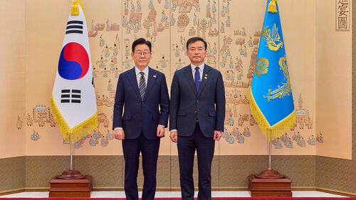 이재명 대통령은 청와대 본관 대접견실에서 김종철 방송미디어통신위원회 위원장에게 임명장을 수여했습니다.