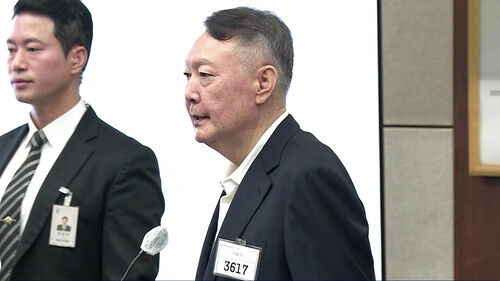 피고인석에 앉아 줄곧 변호인과 이야기를 하던 윤 전 대통령은 공판시작 전 재판장의 호명에 급하게 답하기도 했습니다.
