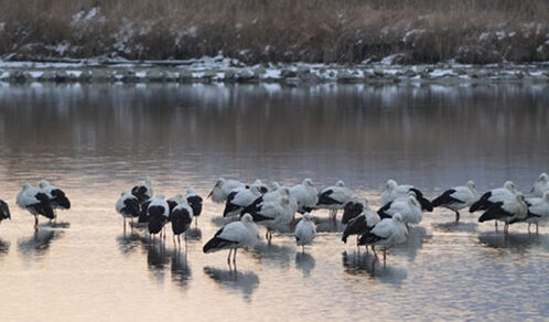 전북 고창군은 천연기념물(제199호)이자 멸종위기 1급인 황새 80여 마리가 해리천 일대에서 월동 중인 모습이 관찰됐다고 오늘(12일) 밝혔습니다.