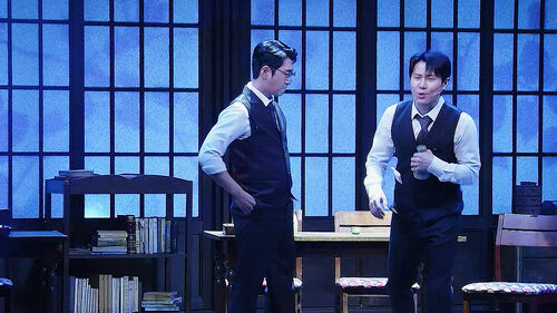 [이규형/배우 : 저희 팬레터는 1930년대에 일제 강점기 시절에 김유정 그리고 이상 소설가들이 그 외에도 다른 소설가분들이 모여 있었던 모임 구인회를 모티브로 만들어졌고요. 제가 연기하고 있는 김유정 소설가님을 모티브로 만든 김해진이라는 역할이 팬레터를 한 장 받게 돼요. 히카루라는 그 이름으로 팬레터를 받게 됐는데, 사실 그거는 문학도인 세훈이라는 친구가 보낸 거였는데 이제 그걸 여자로 착각하고 그러면서 벌어지는 스토리예요. 굉장히 재미있습니다.]