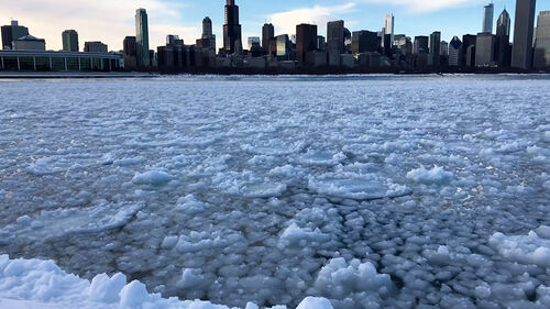 한파가 강타한 미국 일리노이주 시카고 미시간 호숫가에서 포착된 모습입니다.