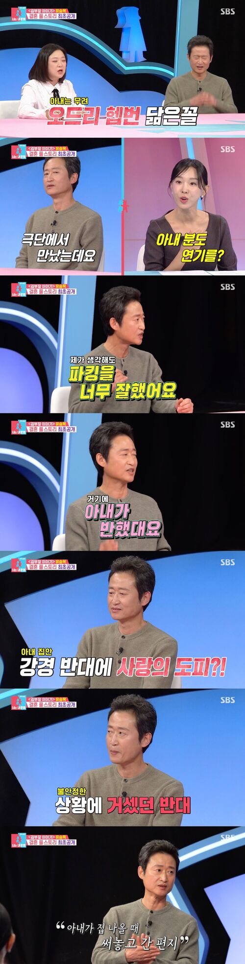 이날 방송에서 유승목은 극단에서 만난 아내가 오드리 헵번을 닮았다며 사랑꾼다운 발언을 했다.