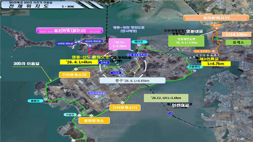 300리 이음길은 자전거를 타고 인천 서구 정서진에서 출발해 제3연륙교를 거쳐 영종도 해안로와 무의도 등을 경유한 뒤 다시 청라호수공원과 아라뱃길로 돌아오는 총연장 130km 코스입니다.