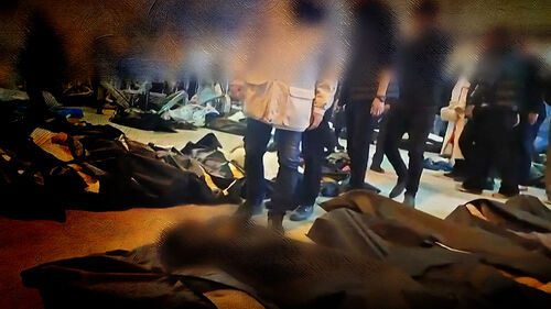 시신을 담은 비닐 가방으로 뒤덮였습니다.