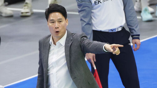 ▲ 현대건설 강성형 감독이 작전을 지시하고 있다.