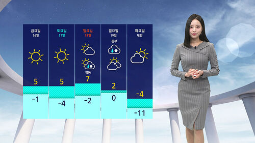 다음 주 월요일에는 중부에 비나 눈이 내리겠고 다음 주에는 영하 10도 안팎의 한파가 지속될 전망입니다.