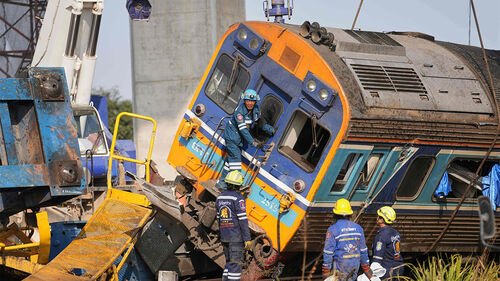 ▲ '32명 사망' 태국 열차 사고 현장에서 구조 작업이 벌어지고 있다.