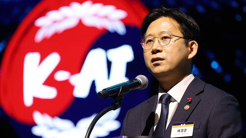 ▲ 배경훈 부총리 겸 과학기술정보통신부 장관이 지난달 30일 서울 강남구 코엑스에서 열린 '독자 AI 파운데이션 모델' 프로젝트 1차 발표회에서 환영사를 하고 있다.