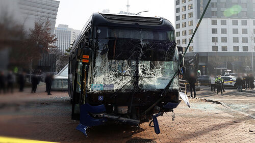 버스는 서울역 방향으로 직진해야 했지만, 제가 서 있는 이 교통섬으로 돌진하면서 행인과 건물을 들이받았습니다.