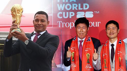 북중미 월드컵을 5개월 앞두고 전 세계를 순회 중인 우승 트로피가 한국에 왔는데요. 트로피를 맞은 한국 축구의 전설들은 애증의 감정을 드러냈습니다.