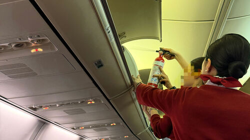 ▲ 연기를 끄는 이스타항공 승무원들