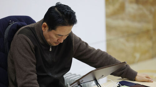▲ 2차 종합특검법 처리에 반대해 단식중인 국민의힘 장동혁 대표가 17일 국회에서 단식을 이어가던 중 생각에 잠겨 있다.