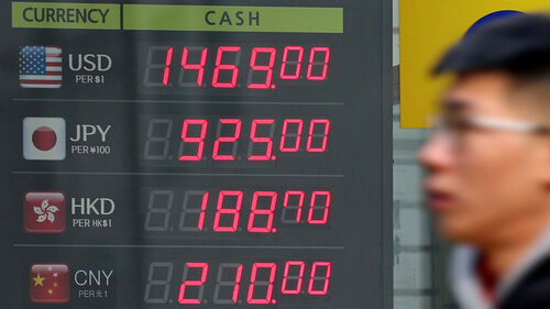 ▲ 지난 16일 서울 명동 환전소에 외화 시세가 게시되어 있다.