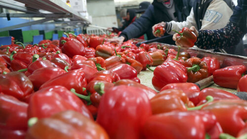 ▲ 경남 창녕군 대지면 한 파프리카 농가에서 일본 오사카 지역으로 수출할 파프리카 선별 작업이 진행 중이다.
