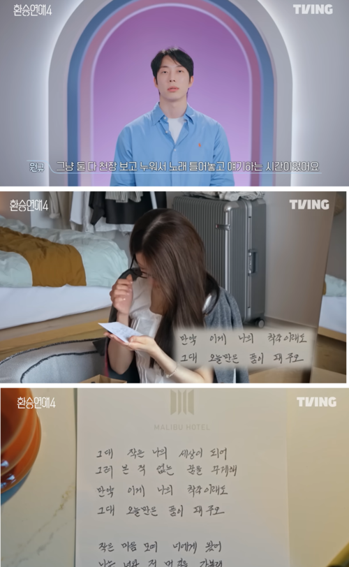 프로그램에서 정원규는 "연애할 때 지현이와 누워서 이 노래를 들으며 가사가 너무 좋다고 웃던 기억이 있다. 지금은 그럴 수 없어 더 슬프다"고 털어놨다. 그는 이 곡의 가사를 손글씨로 적어 박지현에게 건넸고, 박지현은 오랜 서운함이 무너진 듯 눈물을 보이며 두 사람의 관계에 중요한 전환점이 됐다.