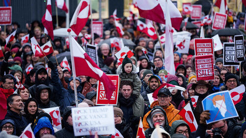 ▲ 그린란드에서 지난 17일 벌어진 반트럼프 시위