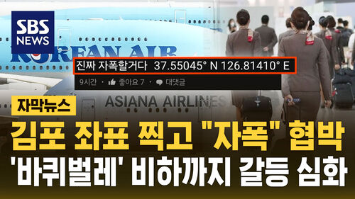 실제로 직장인 익명 커뮤니티 블라인드엔 "대한항공 하는 꼬락서니를 보고 자폭하겠다"며 김포국제공항의 경도와 위도 좌표를 올린 댓글이 포착됐습니다.