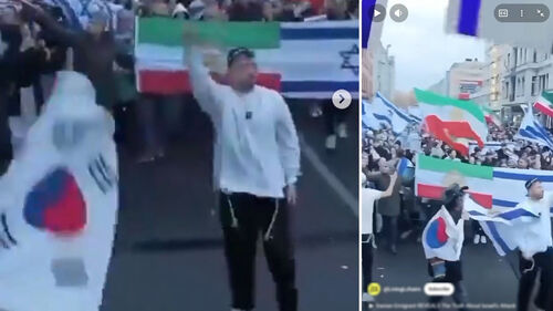 국내에 퍼지고 있는 것과 동일한 영상이었습니다. 역시 태극기가 보였습니다. 해당 영상에는 미국 뉴욕에서 유대인과 이란 사람들이 함께 집회를 하고 있다는 설명이 달렸습니다. 이란 내 반정부 시위가 2025년 말부터 시작됐으니까, 시기상으로 맞지도 않았습니다.