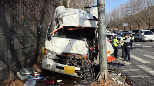 오늘(19일) 오후 1시 30분쯤 인천시 남동구 만수동 영동고속도로 인근 4차로에서 30대 남성 A 씨가 몰던 4.5t 화물차가 신호등을 들이받았습니다.