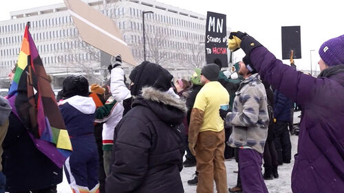 [닉/미니애폴리스 시위 참가자 : 우리는 미네소타 사람들입니다. 이 정도 추위는 아무것도 아니죠. 우리는 몇 시간이고 밖에 있을 수 있습니다. 남쪽에서 온 사람들은 못 버티겠지만요.]