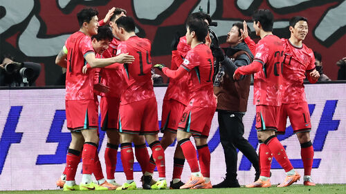 ▲ 서울 마포구 서울월드컵경기장에서 열린 남자축구 국가대표 A매치 평가전 대한민국과 가나의 경기. 후반전 선취골을 넣은 이태석이 동료 선수들과 기뻐하고 있다.