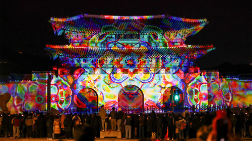 ▲ 서울윈터페스타 통합 개막식이 열린 지난달 12일 광화문에서 미디어파사드가 진행되고 있다.