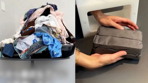 이 장치는 압축백도 필요없고 옷의 부피를 직접 압축해 1분이면 원래 크기의 7분의 1까지 줄여 주머니에 넣을 수 있을 정도로 작게 만들어준다는데요.
