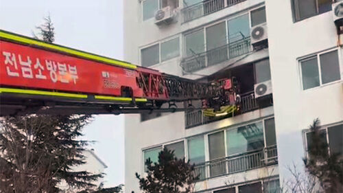 전남 광양소방서에 따르면 19일 오후 5시 23분 광양시 한 아파트 5층 거실에서 불이 났다는 신고가 접수됐습니다.