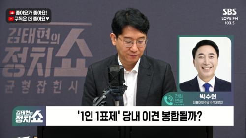 ▶박수현 : 그리고 대표는 공약을 했으니까 그 약속을 지켜야 되잖아요. 지금 약속을 지키는 중인데 약속을 지키지 말라고 할 사람이 누가 있습니까. 그렇기 때문에 1인 1표는 누구도 반대하지 않아요. 그렇게 다 말씀을 지도부에서도 다 하고 계십니다. 엊그제 다시 재추진된 당무위원회 안건에서도 전체 두 분만이 반대가 있었고, 전체가 다 찬성을 한 거잖아요. 참석한 분이. 그렇게 돼 있고 그래서 1인 1표에 대해서 큰 틀에서 이견은 없다.
